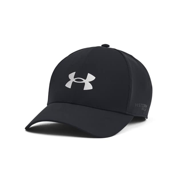 Beskyt dig mod regnvejr med denne Under Armour Driver Rain Cap. Denne regnhat har et strækbart design med indbygget elastisk svedbånd, der sikrer en behagelig og tætsiddende pasform. Hatens materiale er behandlet med en fluorfri vandafvisende behandling, og UA Storm-teknologien og fuldt tapede sømme holder dig tør, selv i vådt vejr. Lavet af 100% polyester for holdbarhed og komfort. Ideel til golfspillere eller udendørs entusiaster, der ikke lader lidt regn stoppe dem.